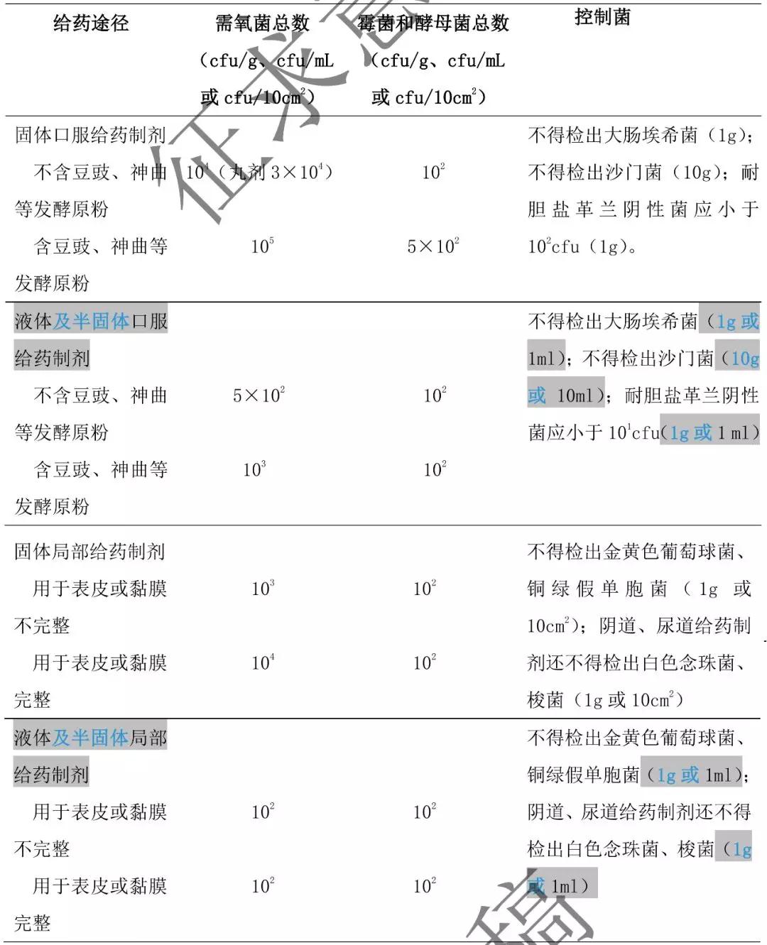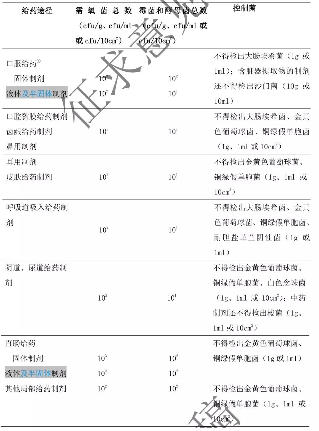 3.非無菌化學(xué)藥品制劑、生物制品制劑、不含藥材原粉的中藥制劑的微生物限度標(biāo)準(zhǔn)見表 1。